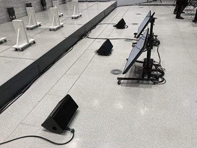 廃校になった体育館での仕事です。電源事情を事前に調べるなど丁寧な前準備をしました。
