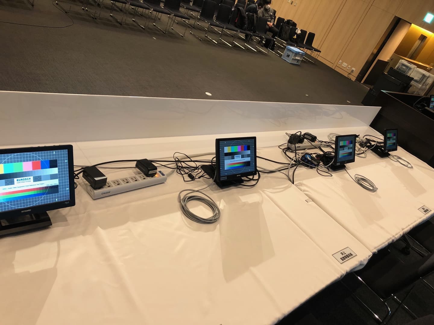 映画の舞台挨拶です。傾斜のある客席にチルトアダプターが活躍します。