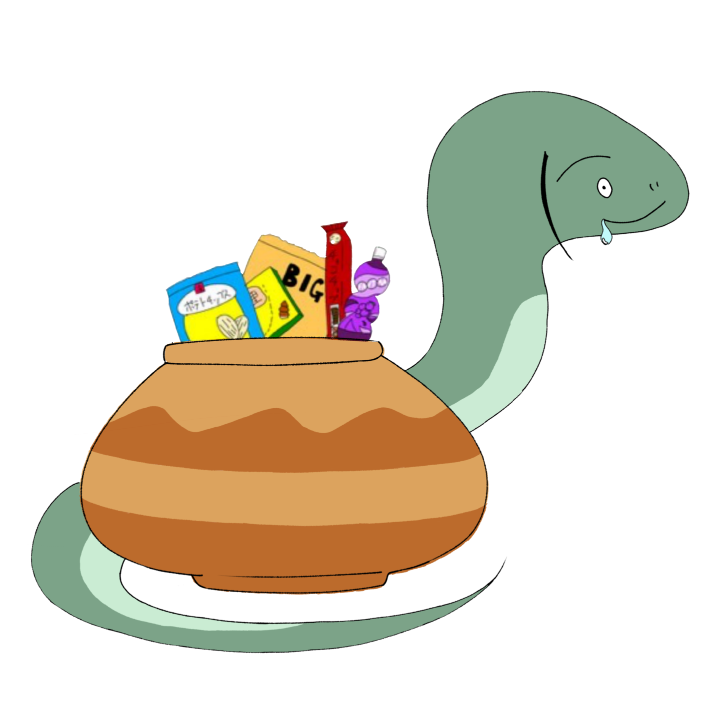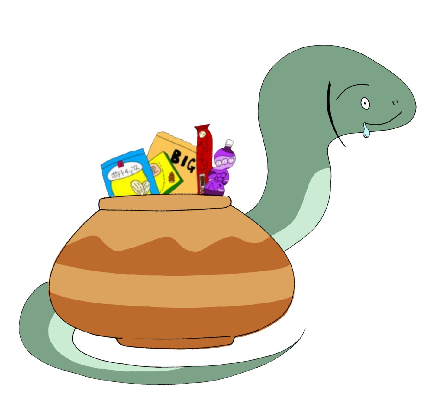 壺には隠れず、へそくり(お菓子)を貯めこみ、